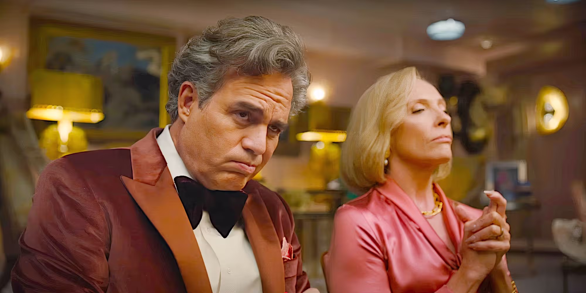 Ruffalo and Collette give performances that are both entertaining and revolting in how true they are to our American political reality. Ruffalo as twice-failed politician Kenneth Marshall gives us an unholy amalgamation of Donald Trump, Elon Musk, RFK Jr., and Uncle Baby Billy from Righteous Gemstones. Toni Collette as his wife Ylfa Marshall gives us a blending of her faux-hippie Knives Out character and Department of Homeland Security Secretary and proud puppy-killer Kristi Noem.